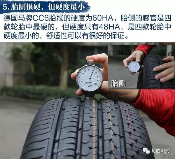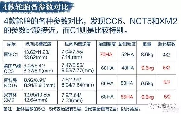 在静态体验环节,轮胎的参数可以一定程度反映出轮胎的性能,其中有定位为耐磨的固铂C1、固特异NCT5和米其林XM2,胎面的硬度比较硬,硬度都超过65HA,胎侧都超过50HA;而定位为舒适静音的德国马牌CC6,虽然在感官方面表现的比较有韧劲,但用硬度表一测,发现胎面和胎侧的硬度是最小。那它们的性能正如参数呈现的一样吗?我们动态测试见分晓。