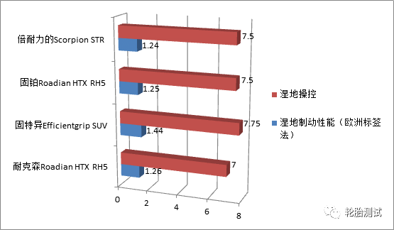 湿地制动环节我们将按照欧洲标签法来评判轮胎,湿地操控为主观平分