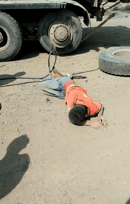 昨天中午,内蒙古呼和浩特110国道上,发生了一起离奇的爆胎事件:一渣土车在110国道上行驶时轮胎损坏,从事流动补胎工作的小伙子前往抢修。万万没想到祸从天降,需要修补的轮胎在外侧,轮胎刚刚拆掉,同轴内侧的钢圈却突然爆炸,导致补胎小伙被炸倒在地,在场人员拨打120送医。