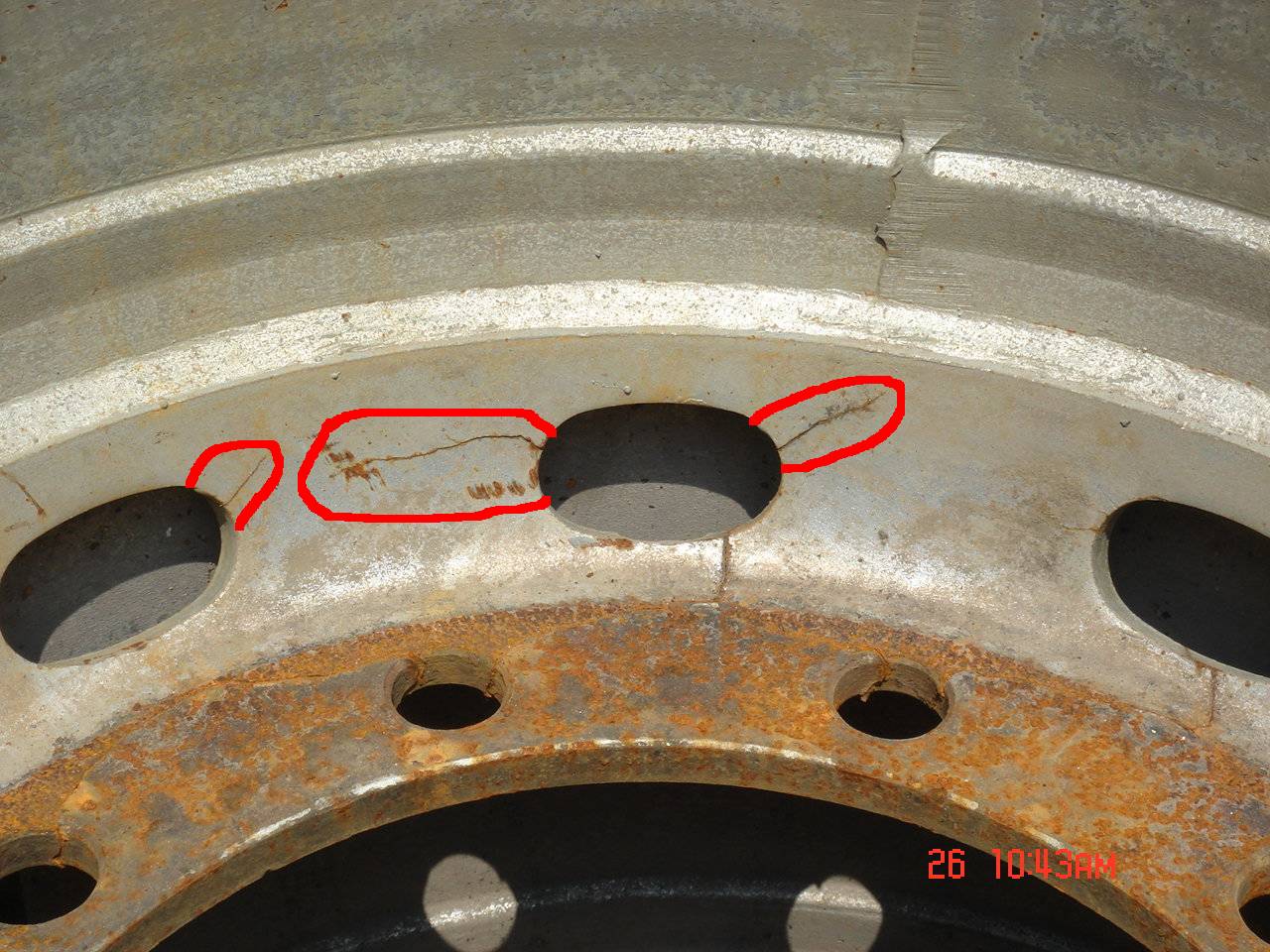 8、钢圈辐板螺栓孔裂纹、变形、扩大、辐面磨损