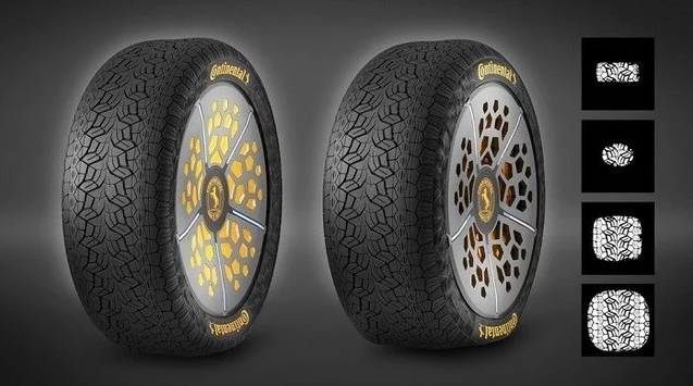 德国大陆集团近日展示的其最新款概念轮胎:能够持续监测、汇报轮胎的健康度,甚至可以通过改变自身特性得以适应不同的路况。