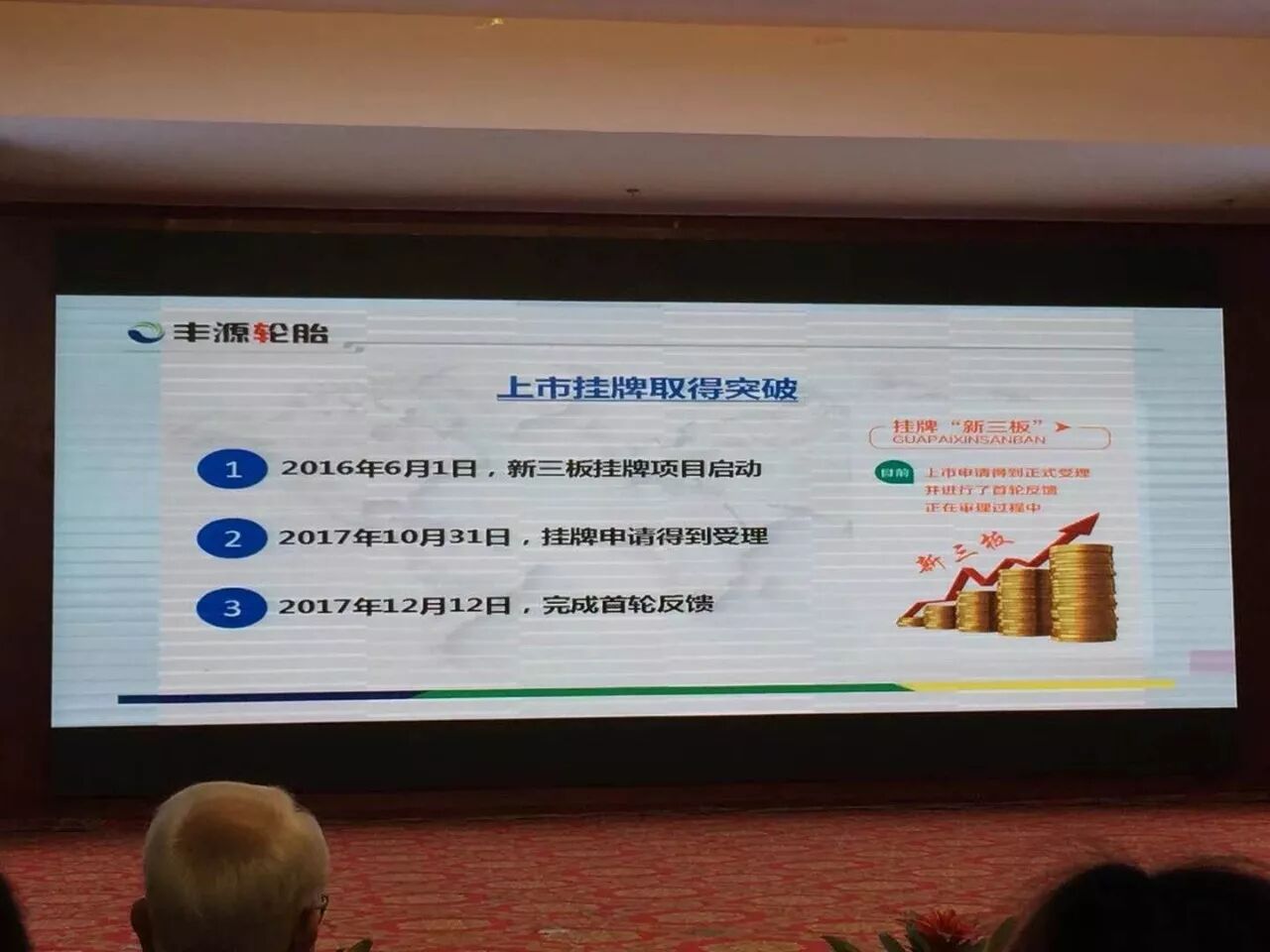 2017年,丰源轮胎在新三板上市取得了突破性的进展,12月12日已经完成首轮反馈,现上市工作正在审理中。随后,丰源轮胎常务副总杜云峰感谢了广大经销商积极配合丰源上市工作的调查反馈,及时回复询问函,体现了丰源轮胎和经销商之间企商互助的深厚情谊。