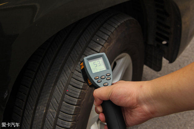 频繁使用加之测试当天北京气温高达35°C,轮胎温度已然升至53°C,但与测试前测量数据相比,升温并不高,这也恰恰说明了Primacy SUV旅悦轮胎有着出众的能耗表现。