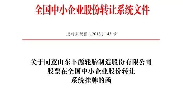 关于山东丰源轮胎制造股份有限公司股票在全国中小企业股份转让系统的函,全国中小企业股份转让系统有限责任公司在1月16日作出回应。根据相关业务规则,同意山东丰源轮胎制造股份有限公司股票在全国中小企业股份转让系统挂牌,转让方式为集合竞价转让。“行业黑马”再次惊艳轮胎圈!
