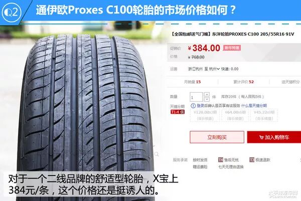 ● 问题2.通伊欧Proxes C100轮胎的市场价格如何?