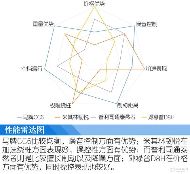 四款轮胎中德国马牌CC6的综合性能最均衡,兼顾了静音、经济以及操控性能,想要健全表现的朋友可以考虑,而米其林韧悦则是在操控性以及静音降噪方面有优势,但价格稍贵,对驾控有要求的朋友可以考虑。普利司通泰然者同样是在静音降噪方面有优势,另外经济性方面也有较好表现,想要静音舒适的朋友可以考虑。邓禄普D8H则是在价格以及操控方面有优势,追求性价比的朋友可以看看。