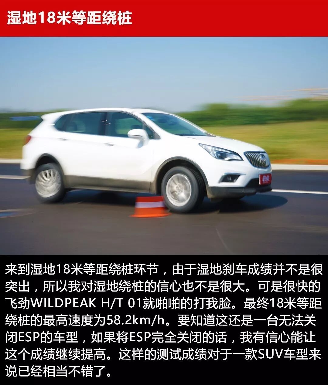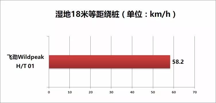 在湿地路面上,每个桩桶间隔18米,一共有10个桩桶,需要连续变线9次,P-BOX会记录最高车速。轮胎进行五次绕桩测试,成绩取五组里面最好的那个。