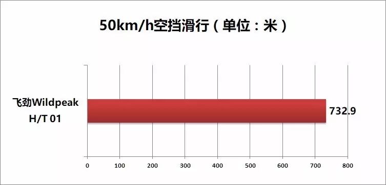 车辆加速到50km/h,然后挂入空挡关闭发动机让车辆沿直线滑行,期间不对车辆采取任何操作,用P-BOX记录车辆滑行的距离。空挡滑行的距离长短能够体现出轮胎滚动阻力的大小。轮胎的滚动距离越小,车辆滑行的距离越长,油耗也会越低。