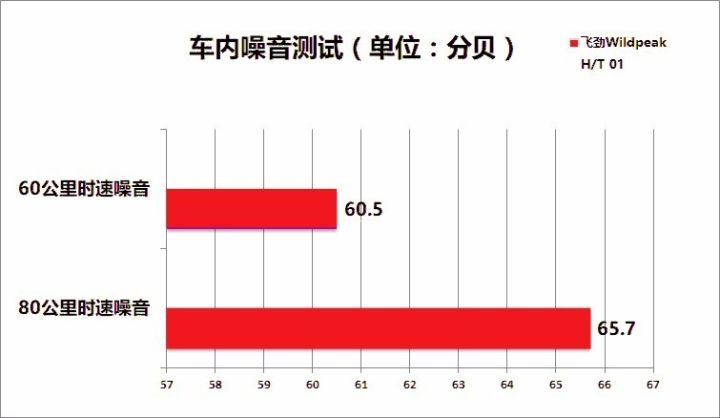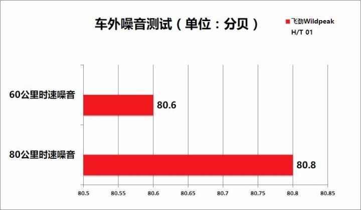 车外噪音测试,我们使用噪音仪测试60km/h、80km/h车速下,挂空挡车辆经过测试设备时噪音的大小,每个速度测试五次取样,并以五组数据的平均值作为最终成绩。但由于背景噪音和风速等干扰原因,车外噪音测试部分仅供参考。