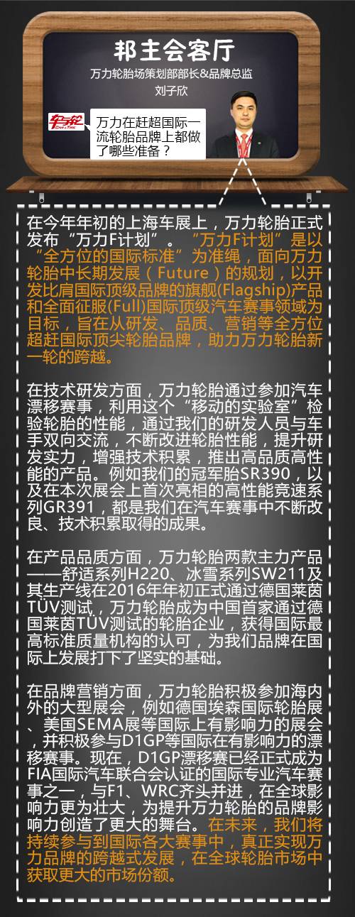 为此,车与轮借机采访了万力轮胎股份有限公司市场策划部部长&品牌总监刘子欣先生。