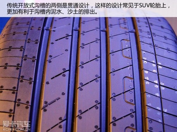 我们知道,传统的轮胎在沟槽的设计上,大多采用的是开放式的沟槽设计。由于两侧是贯通的,这无疑更有利于泥水、沙土的排出。目前市面上大部分SUV轮胎都是这样的设计,为的是在面对泥土路面时,能够快速排出杂物,保证轮胎抓地力不会大幅度的降低。