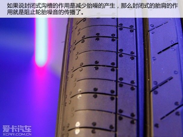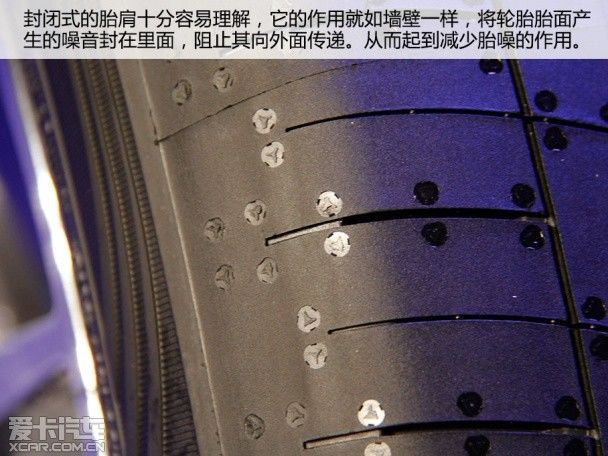 如果说封闭式沟槽的作用是减少胎噪的产生,那么封闭式的胎肩就是阻止噪音的传播了。无论现在的轮胎采用什么样的设计,都无法完全避免胎噪的产生。但是还是有方法可以阻止噪音向驾驶舱传播的。