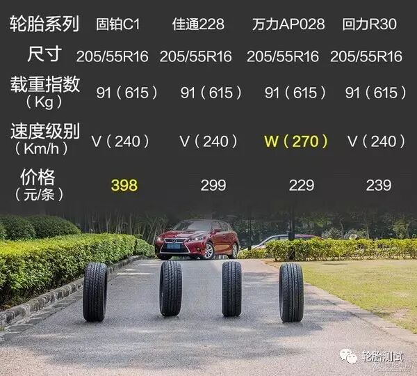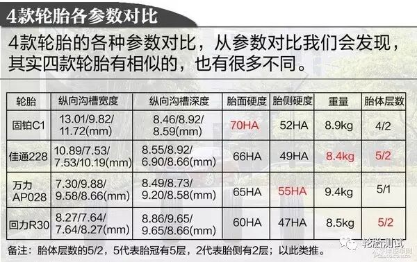 关于测试的4款轮胎,我们先去了解它的一些参数对比,价格相差不会很大,而且各参数基本上保持一致。
