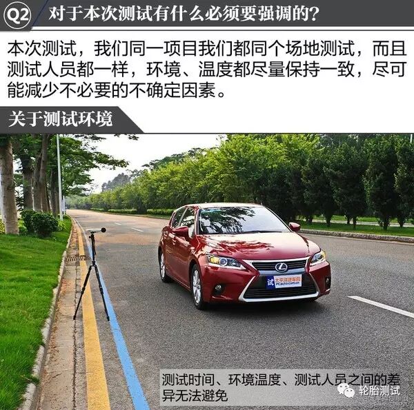 由于环境对于轮胎测试的各项成绩影响非常显著,比如地面温度、胎压情况、测试人员等等,条件所限,我们没有办法使用同一款车将四套轮胎同时测。正是上述原因,本文并不会将每一项测试结果进行横向对比。重点仍然是将205/55 R16这一尺寸及相近规格的4套轮胎分别进行测试。每次的测试结果仅针对该次测试的该款轮胎,所以结果仍然非常具有参考价值。