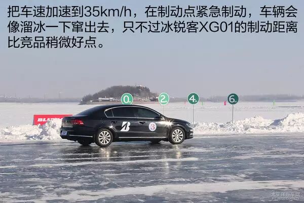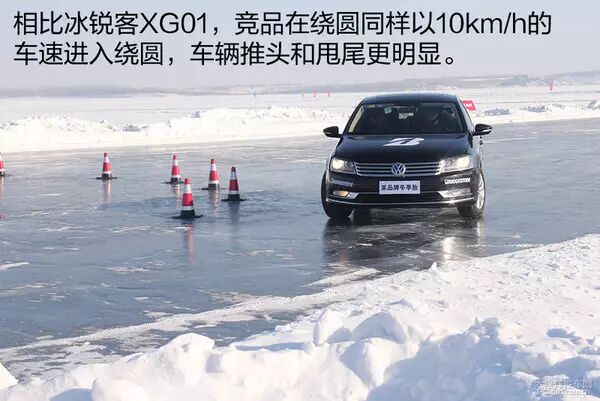 冰面体验的轮胎是普利司通的冰锐客XG01,它主要针对轿车,因此本次体验的车型为迈腾1.8T,分别装上冰锐客XG01和竞品的冬季轮胎进行对比体验。体验换项目一样,分别是起步、绕桩、绕圆、加速和制动;通过体验发现冰锐客XG01与竞品在性能上有哪些区别。