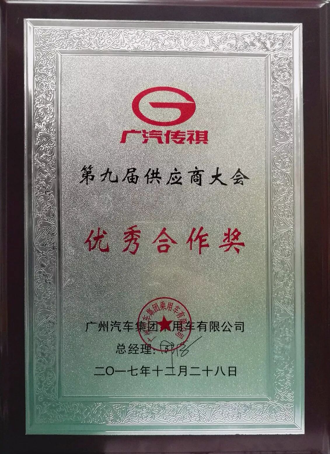 广汽乘用车第2017年度“优秀合作供应商奖”