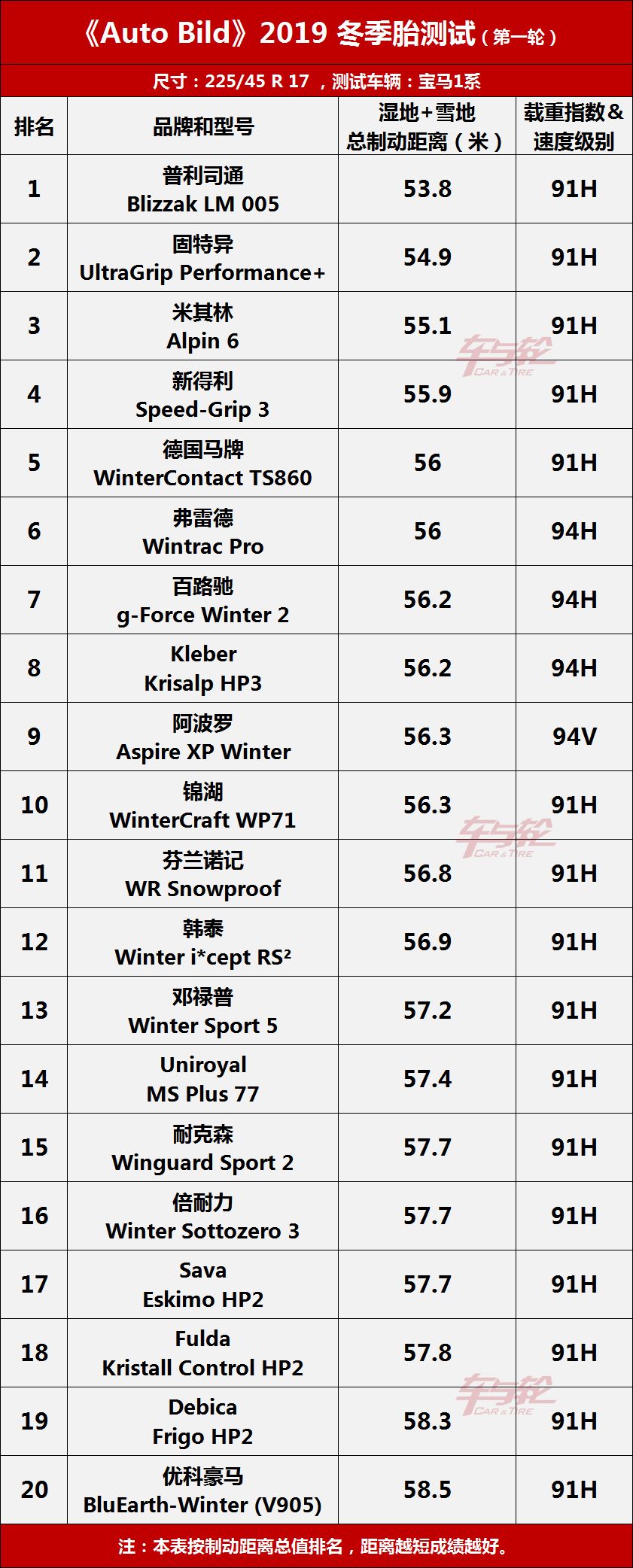 一般来说,每年10月份中国北方气温会出现骤降,甚至在部分区域会出现初雪,冬季胎更换迫在眉睫,如何挑选一款制动距离最佳的冬季胎成了车主近期最为关注的话题。